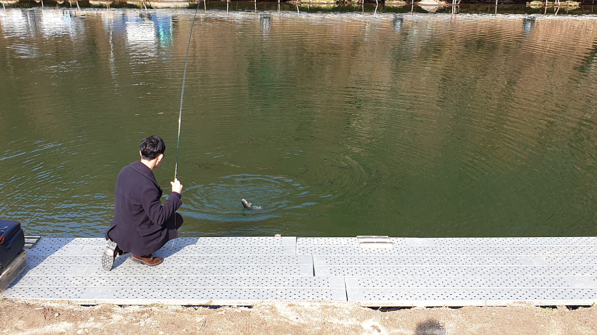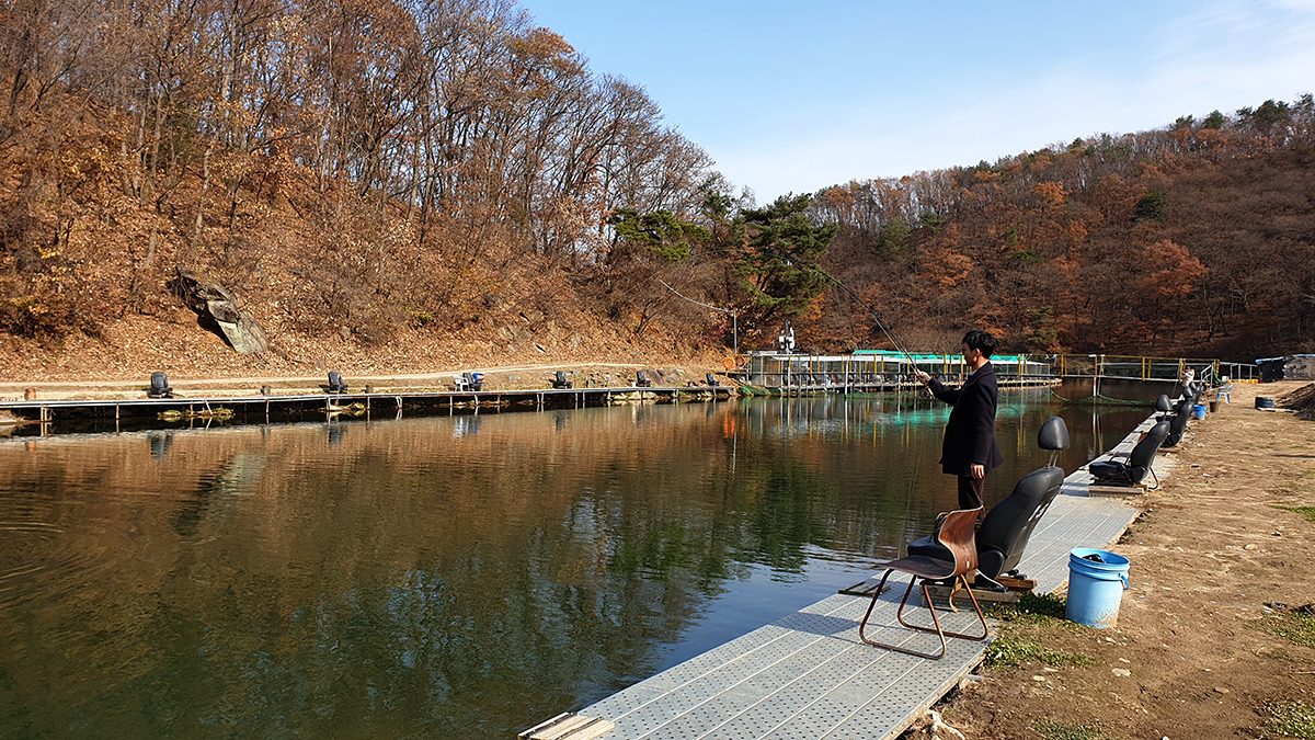 화도 낚시 공원은 물이 맑아서 송어들이 플라이에 반응하는 모습을 직접 목격할 수 있어서 낚시 공부에도 도움이 많이 되는 낚시터입니다.
