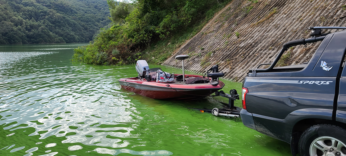 녹조라떼 속에서라도 배스 손맛을 보기위해 보트 런칭중~~~~~